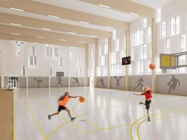 На первом этаже разместится универсальный спортзал с трибунами на 400 зрителей, а на втором – тренажёрный зал и зал аэробики. На третьем этаже проектом предусмотрен зал общей физической подготовки.