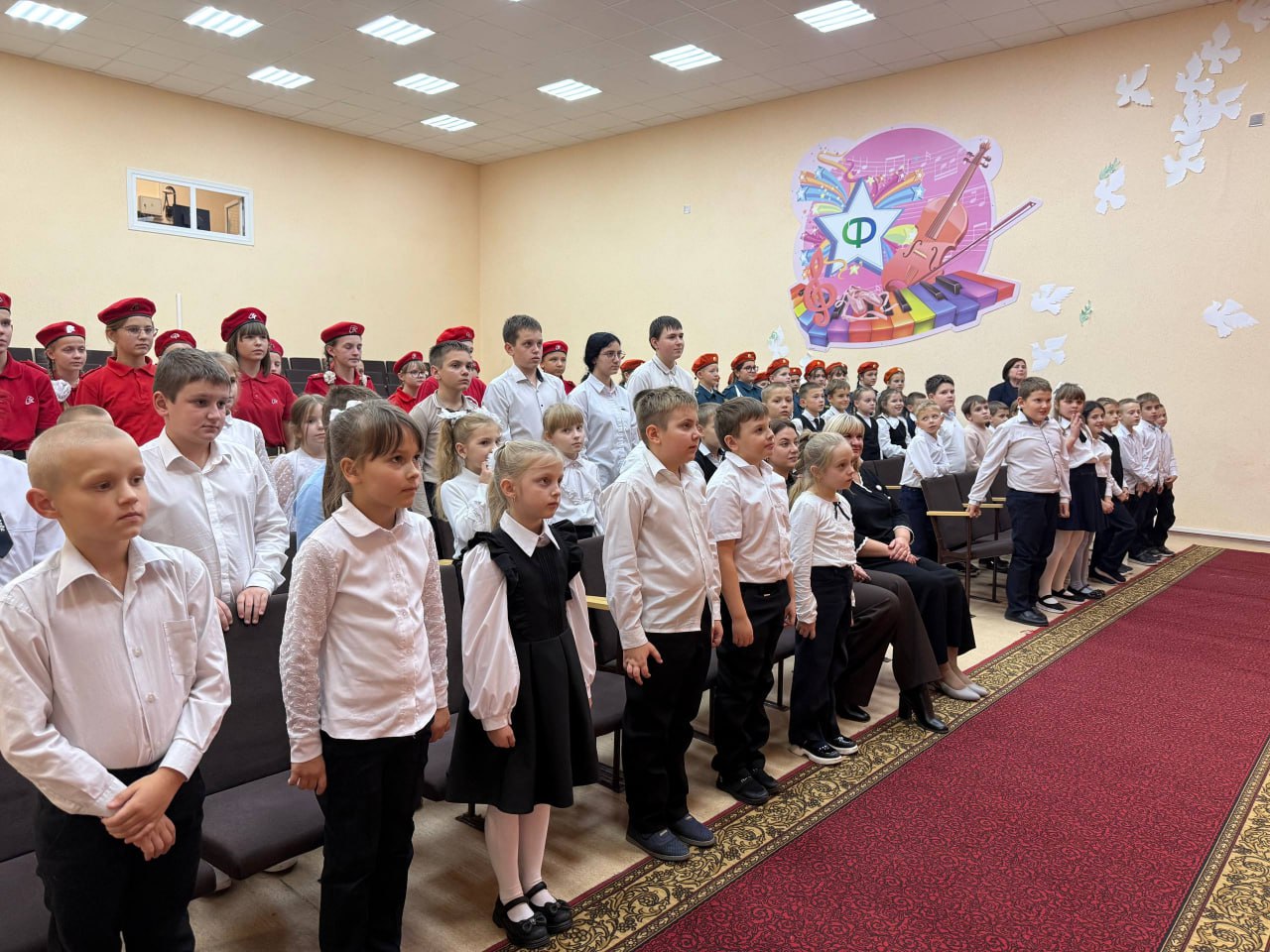 Сегодня в первичном отделении школы №4 состоялась торжественная церемония вручения знаков отличия «Движения Первых».