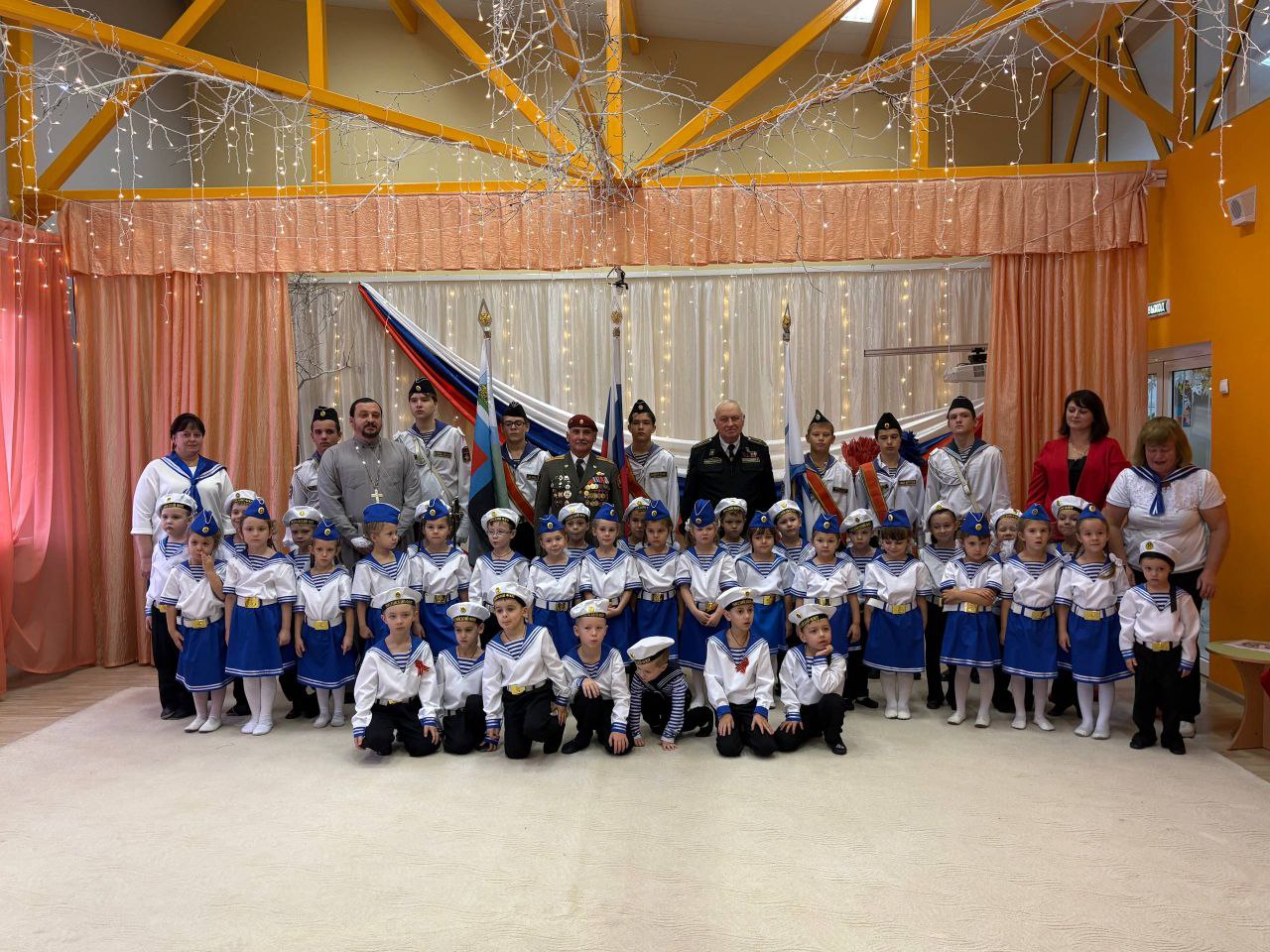 В детском саду «Радонежский» 23 октября 2025 года состоялась торжественная церемония посвящения воспитанников в ряды «Юных моряков». Поздравить ребят пришли: капитан первого ранга, руководитель ВПК «Тайфун» Николай Степанович Якубовский, начальник ДОСААФ Яковлевского муниципального округа, полковник запаса Виталий Алешевич Шубитидзе и настоятель храма в честь Димитрия Ростовского, духовный наставник иерей Роман Донец.