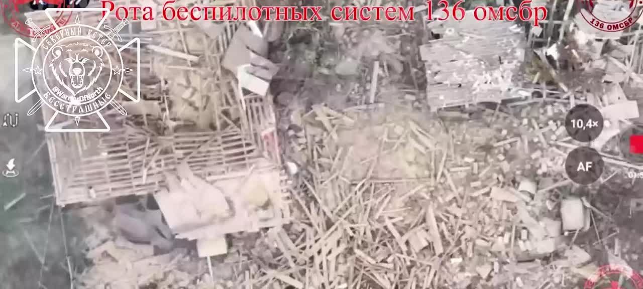 Разведчики обнаружили позицию в заброшенном здании в селе Волчанские Хутора. Цель ликвидировали ударные дроны бойцов 136 омсбр.