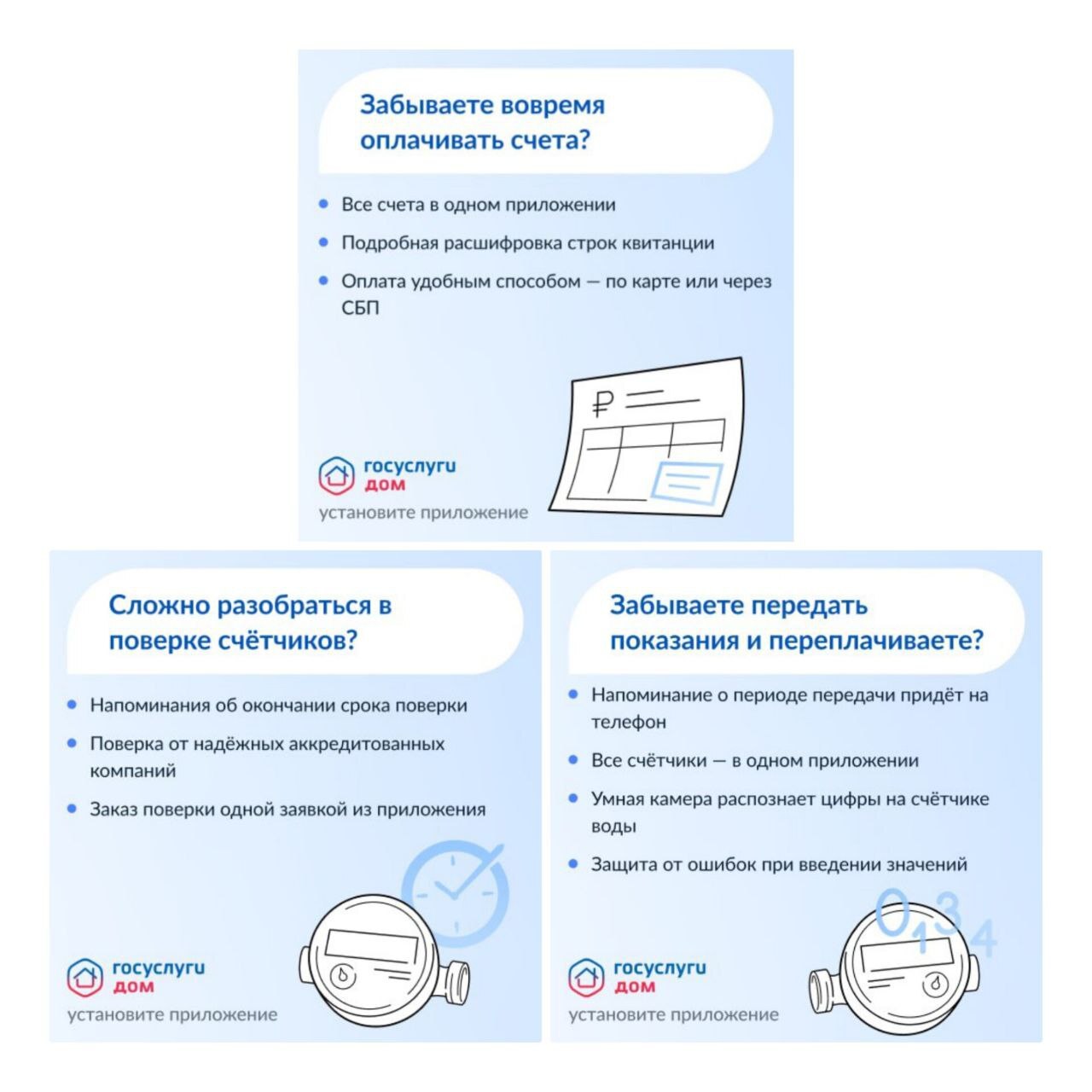 "Госуслуги.Дом" напомнит о сроках передачи показаний по счётчикам.