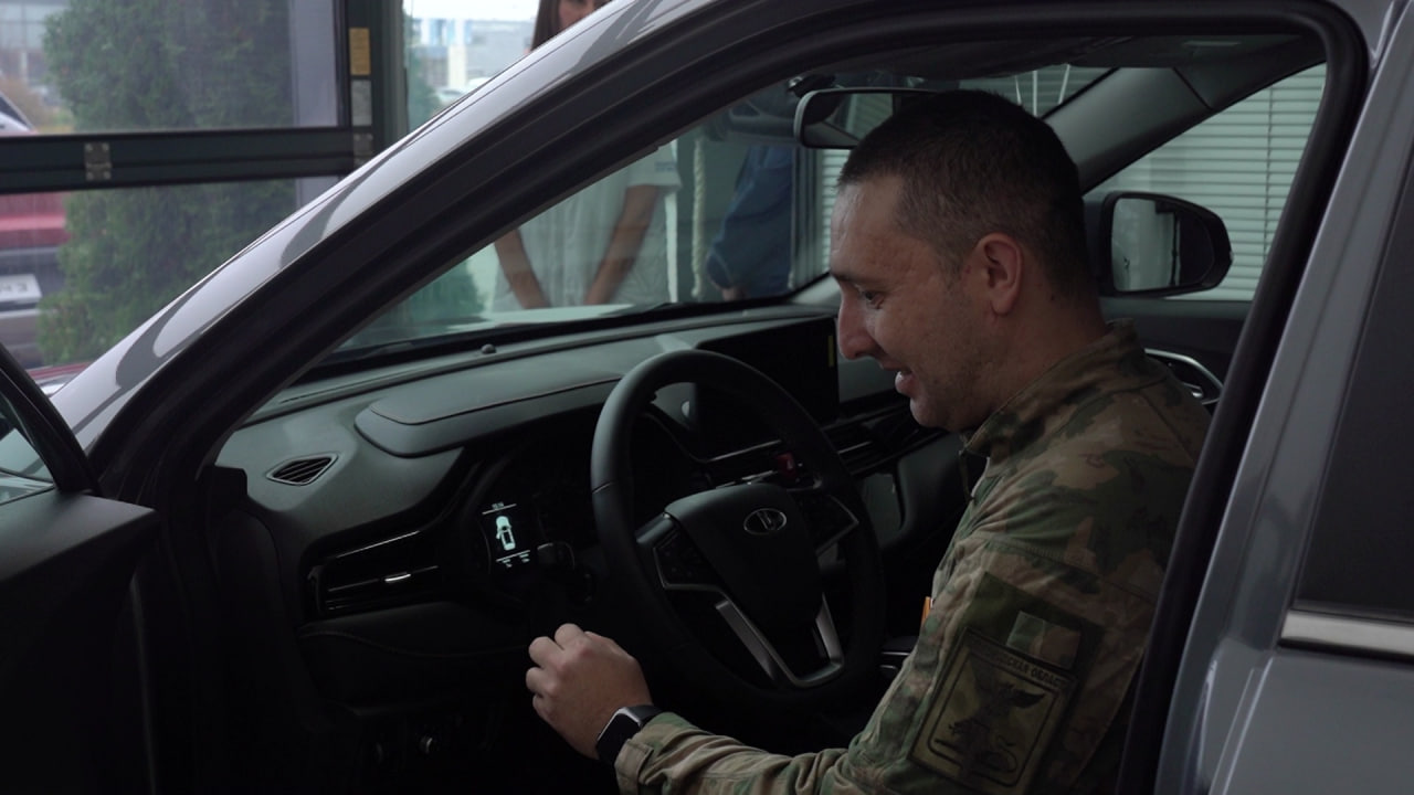 На лице Алексея – улыбка. Впервые после возвращения с фронта за рулём своего, уже нового, авто. Мобилизовали в 2022 году, летом 2023-го был тяжело ранен. Провёл длительное время в госпитале, получил инвалидность первой степени. Имеет награды, например, медаль «За отвагу». Алексей стремится вперёд, автомобиль – в подспорье.