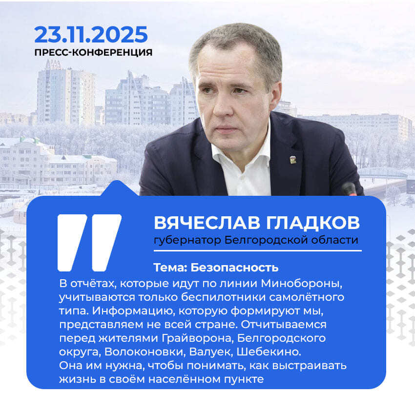 Вячеслав Гладков прокомментировал расхождения в цифрах между федеральными и региональными сводками сбитых БПЛА