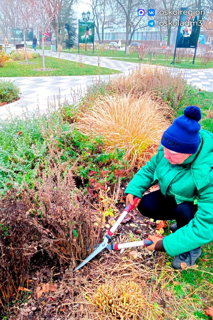 Уже на следующей неделе наступит зима, поэтому сотрудники «Зеленстроя» заботятся о городских клумбах в любую погоду.