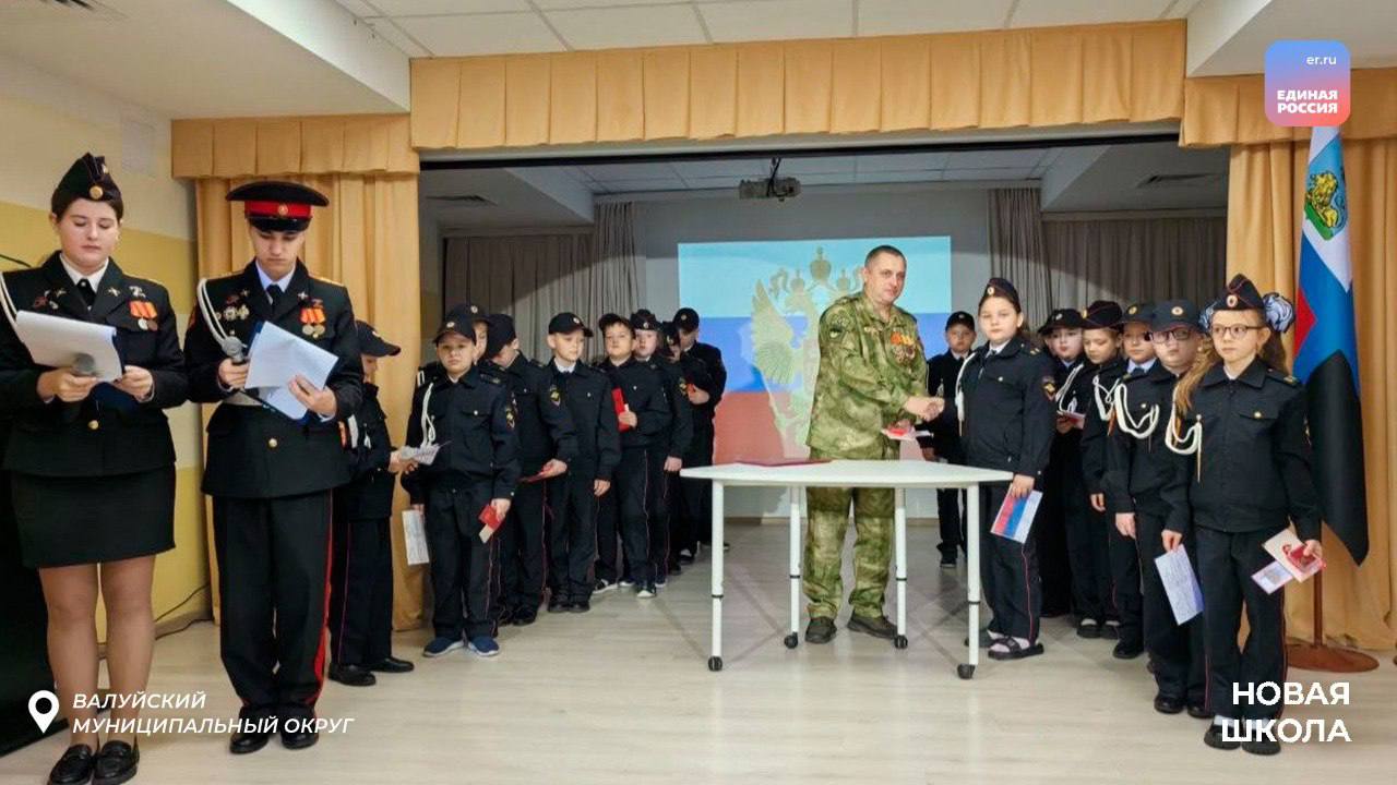 На базе Валуйской средней школы №4 состоялась торжественная церемония вступления в ряды Кадетского движения. Школа была капитально отремонтирована в рамках народной программы и партпроекта «Новая школа». Теперь в учебном заведении созданы все условия для обучения и воспитания подрастающего поколения.