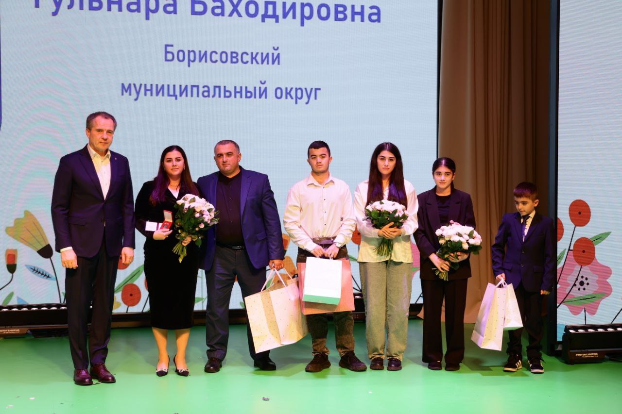 Накануне праздника две семьи из Борисовского муниципалитета получили высокие награды из рук губернатора Белгородской области Вячеслава Гладкова. Медали материнской славы II степени были вручены Ольге Гарькавой и Гульнаре Усмановой. Ольга вместе с мужем Николаем воспитывают двух дочерей и сыновей-близнецов. Гульнара из села Стригуны вместе с супругом Илимдаром растит тоже двух сыновей и двух дочерей.
