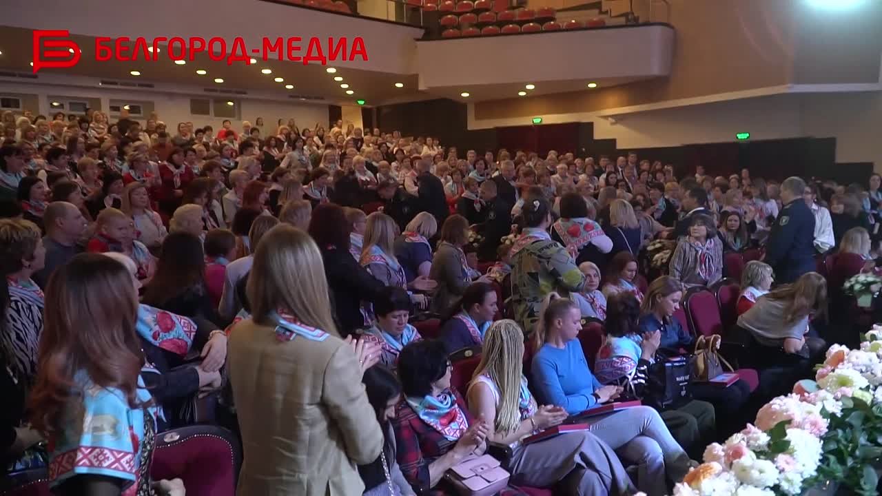 Помимо трогательных творческих номеров, каждой женщине подарили платок «Белгородский Покров», специально созданный в честь 25-летия флага нашей области.