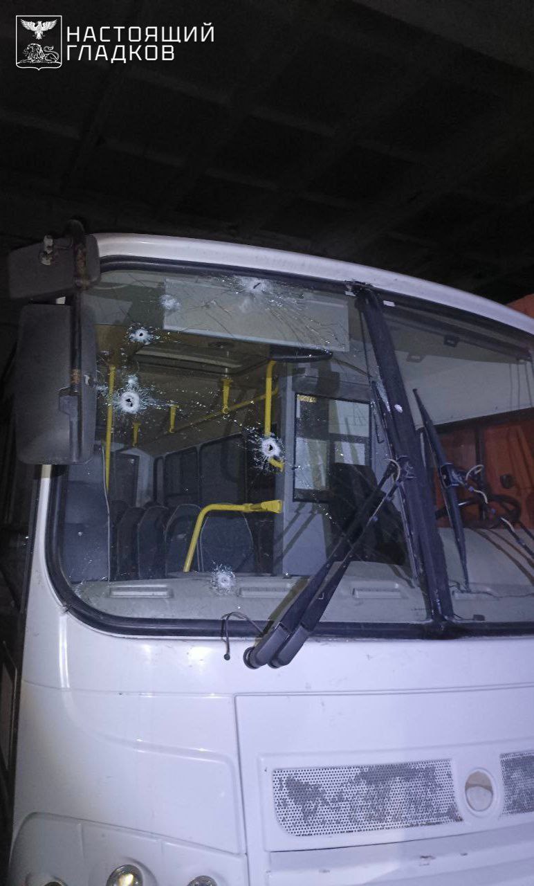 Кроме того, в городе в результате прилёта снаряда на территорию предприятия в двух зданиях выбиты окна и посечены фасады. Осколками посечены автобус, два трактора, грузовой и две машины.