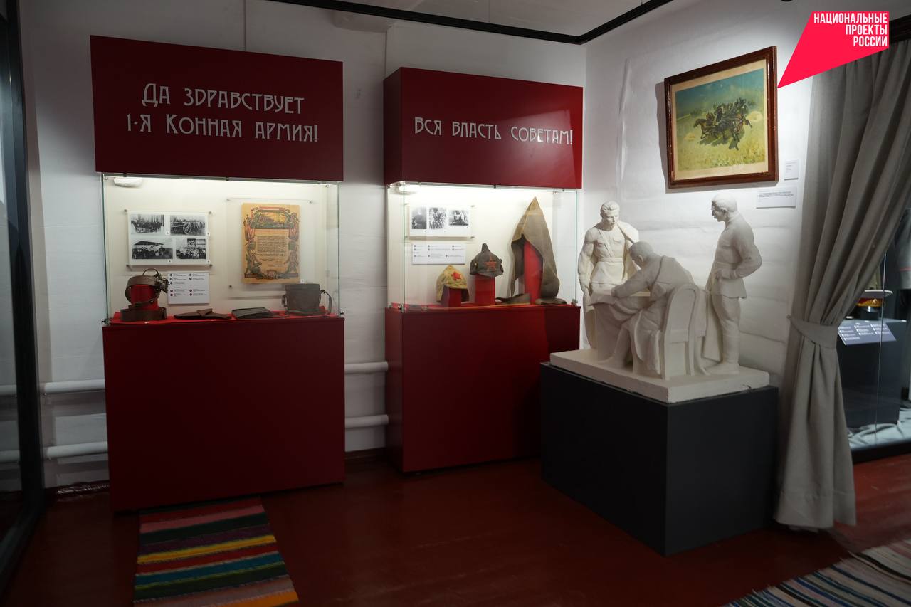 Сегодня в обновлённом музее представлена экспозиция, посвящённая истории Первой Конной армии. Современное выставочное пространство позволяет по-новому взглянуть на события начала XX века. В экспозиции представлены личные вещи, документы, оружие командующих армии Буденого, Ворошилова, Тимошенко и других бойцов и командиров. В музее вниманию посетителей представлено 10 экспозиционных залов.