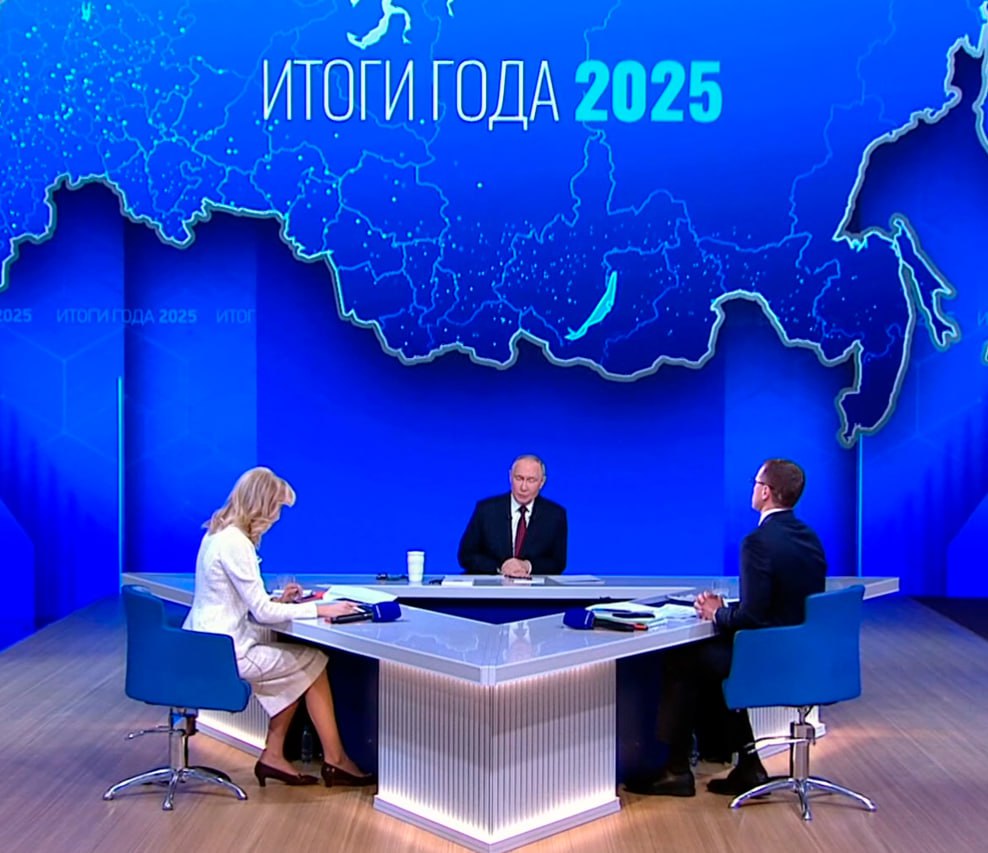Президент Российской Федерации Владимир Владимирович Путин проводит прямой эфир по подведению итогов 2025 года.