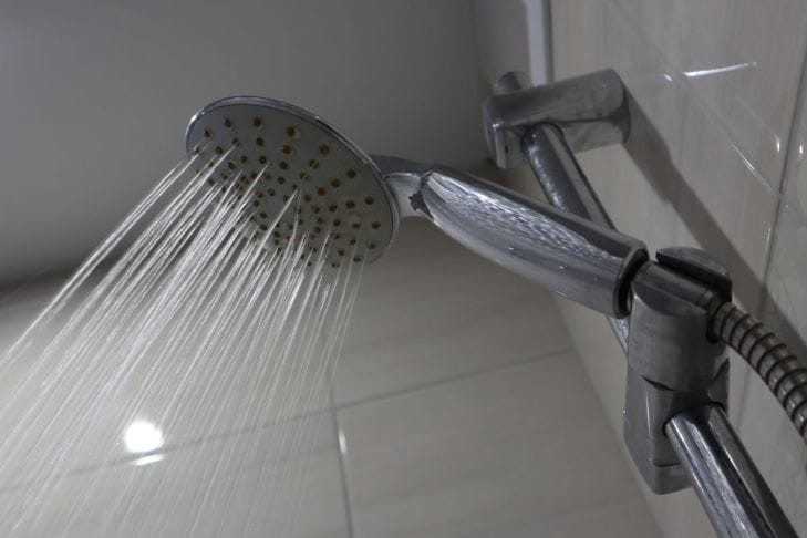 Распылите состав на сухие поверхности, уделяя внимание швам и сетке лейки душа. Оставьте на 20 минут – за это время произойдет реакция нейтрализации с выделением углекислого газа.