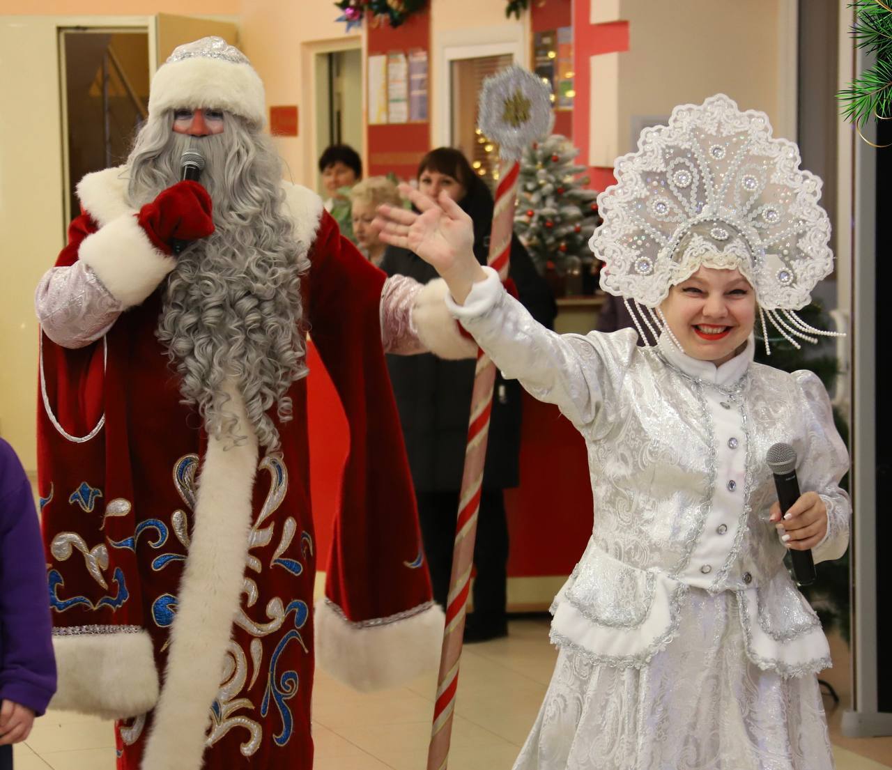 На празднике под руководством Деда Мороза, Снегурочки и сказочных персонажей дети и взрослые водили хоровод, пели песни и участвовали в весёлых играх.