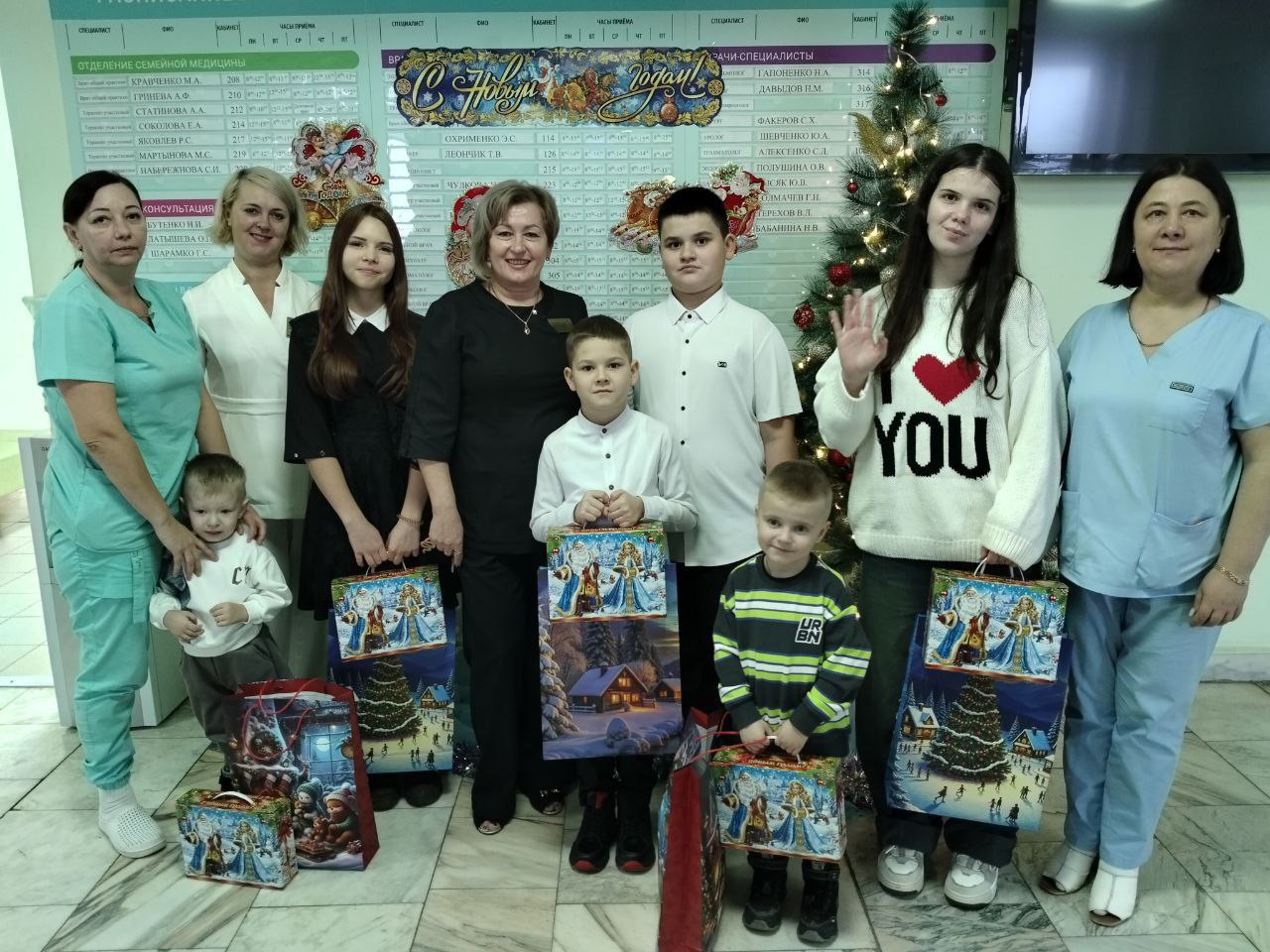 Особое внимание было уделено детям, чьи отцы сейчас выполняют воинский долг, защищая Родину. Председатель профсоюзной организации больницы Елена Климова лично вручила шестерым таким ребятам не только сладкие наборы, но и игрушки.