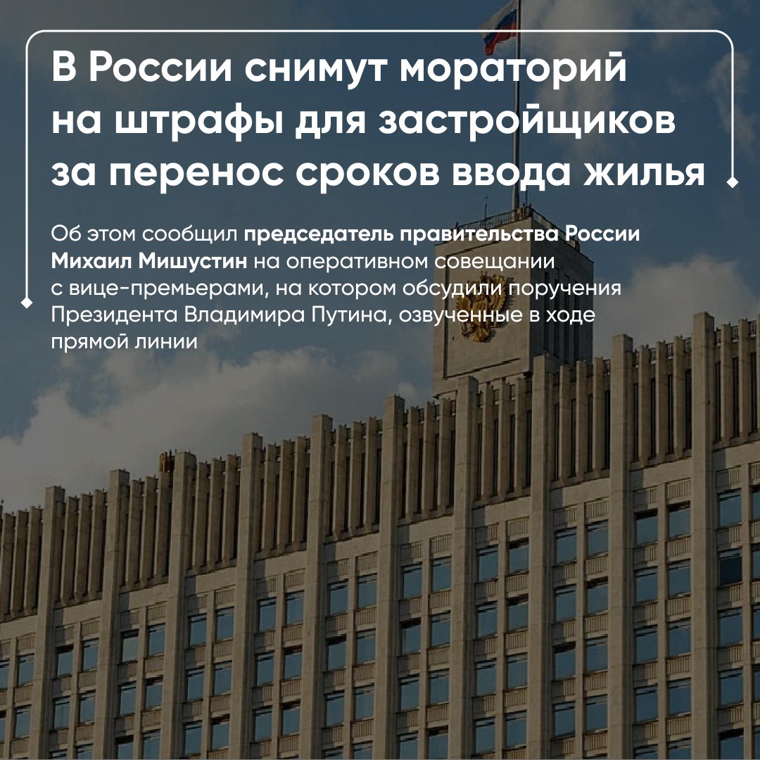 Одно из наиболее значимых решений — снятие моратория на штрафы для застройщиков, нарушающих сроки передачи объектов долевого строительства.
