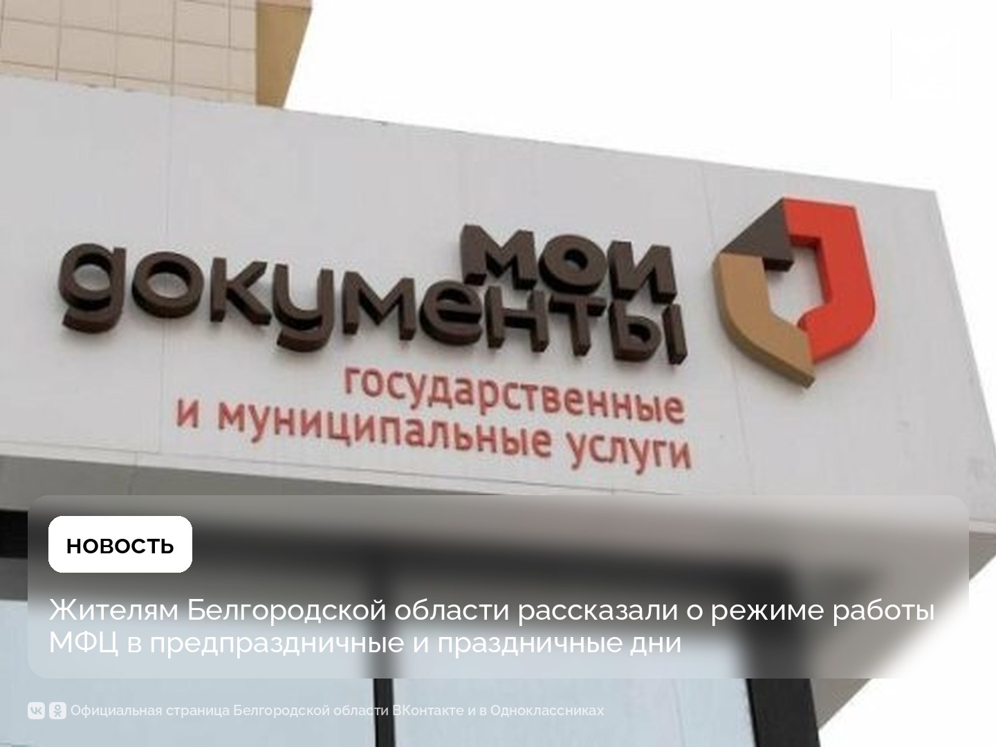 Жителям Белгородской области рассказали о режиме работы МФЦ в предпраздничные и праздничные дни