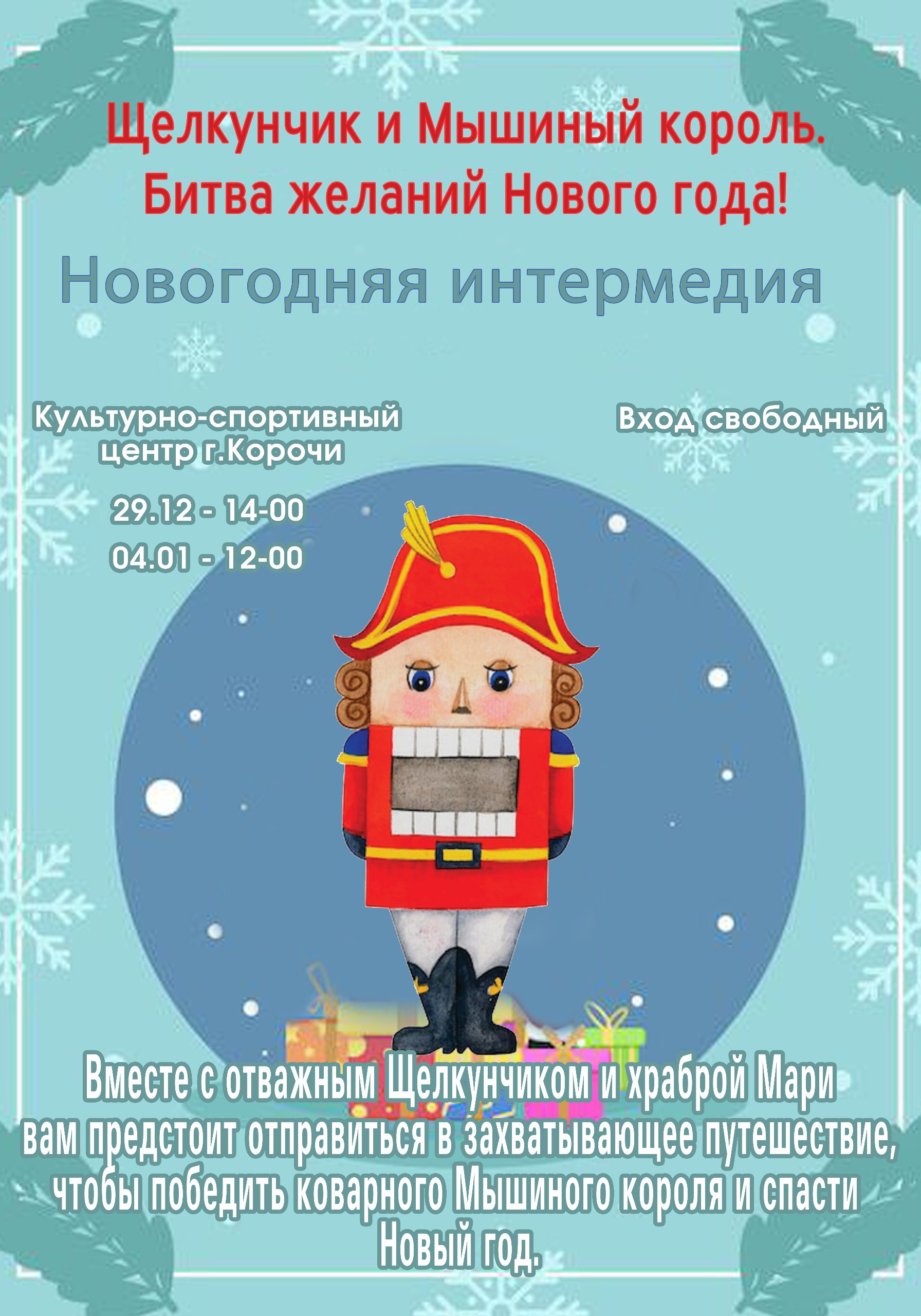 В преддверии Нового года и на праздничных выходных в культурно-спортивном центре города Короча состоится новогодняя интермедия «Щелкунчик и Мышиный король. Битва желаний Нового года!».