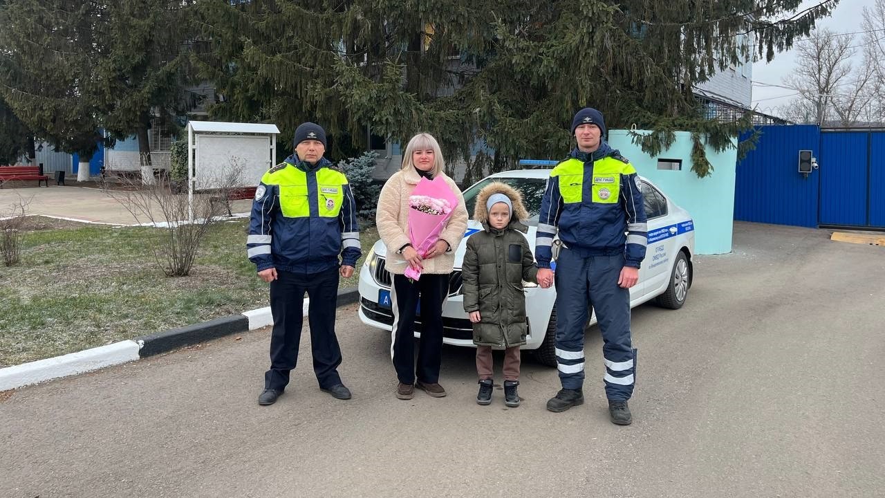 На следующий день семья лично поблагодарила полицейских. Сотрудники Госавтоинспекции вручили мальчику сладкий подарок, а его матери – цветы, поздравив с наступающими праздниками.