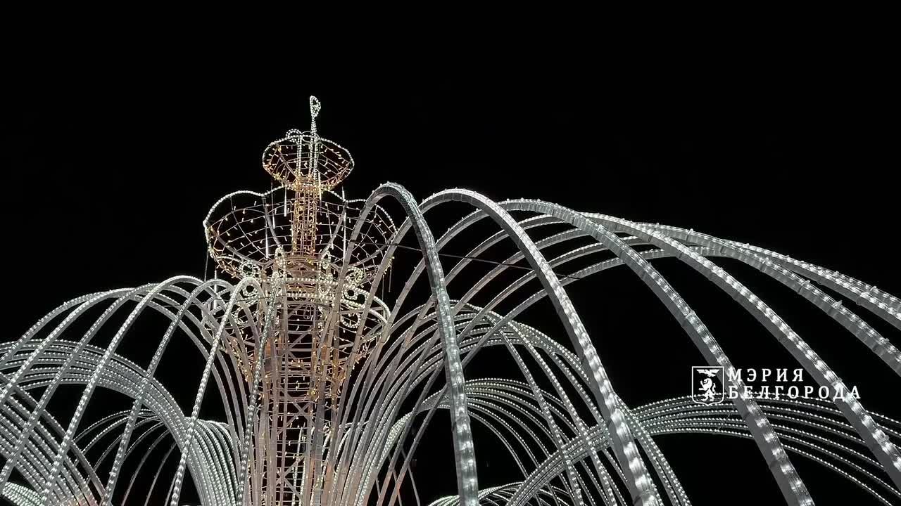 Динамические гирлянды создают иллюзию живого, движущегося потока с переливами светлых и холодных огней. Высота светового объекта достигает десяти метров в диаметре и пяти метров в высоту.