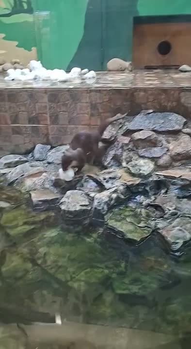 Киперы принесли Карамельке и Сырку много снега, а в снежках спрятали разные вкусности. Выдры квест прошли и всё нашли – с большим удовольствием. Милыми кадрами поделились в белгородском зоопарке