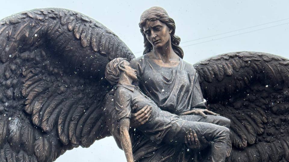Высота бронзового монумента – пять метров, а вес – около четырёх тонн. В его центре – ангел, бережно держащий ребёнка. Крылья скульптуры образуют форму сердца и покрыты ранами, олицетворяя боль и надежду одновременно.
