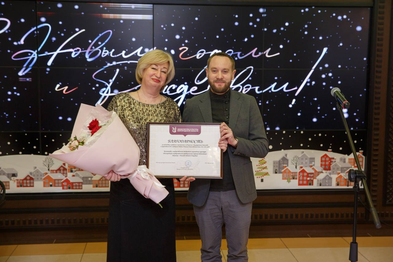 Поздравил коллег из государственных музеев и библиотек, методического центра по художественному развитию с наступающим Новым годом, поблагодарил за профессиональную работу, а также вручил ведомственные награды и награды Губернатора Белгородской области