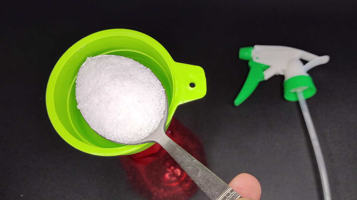 - Возьмите бутылку с распылителем и добавьте в нее 1 столовую ложку лимонной кислоты.