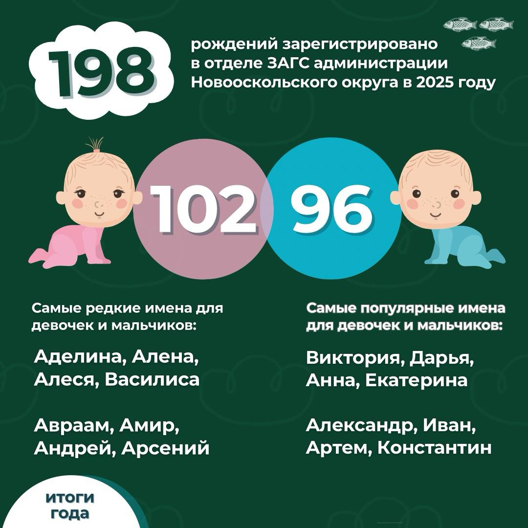В этом году в наших семьях родилось 198 новых жителей – 96 мальчиков и 102 девочки. Среди них – 3 двойни.