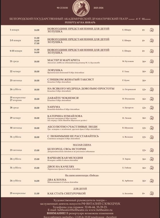 Белгородский драмтеатр разместил афишу представлений на январь и февраль