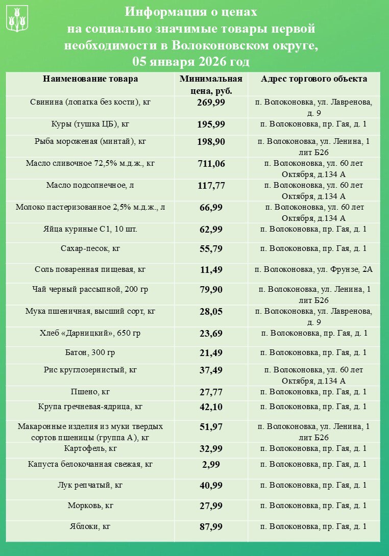 Уважаемые волоконовцы!. Информируем вас о ценах на продовольственные товары из базовой потребительской корзины, складывающихся в нашем муниципалитете на сегодняшний день