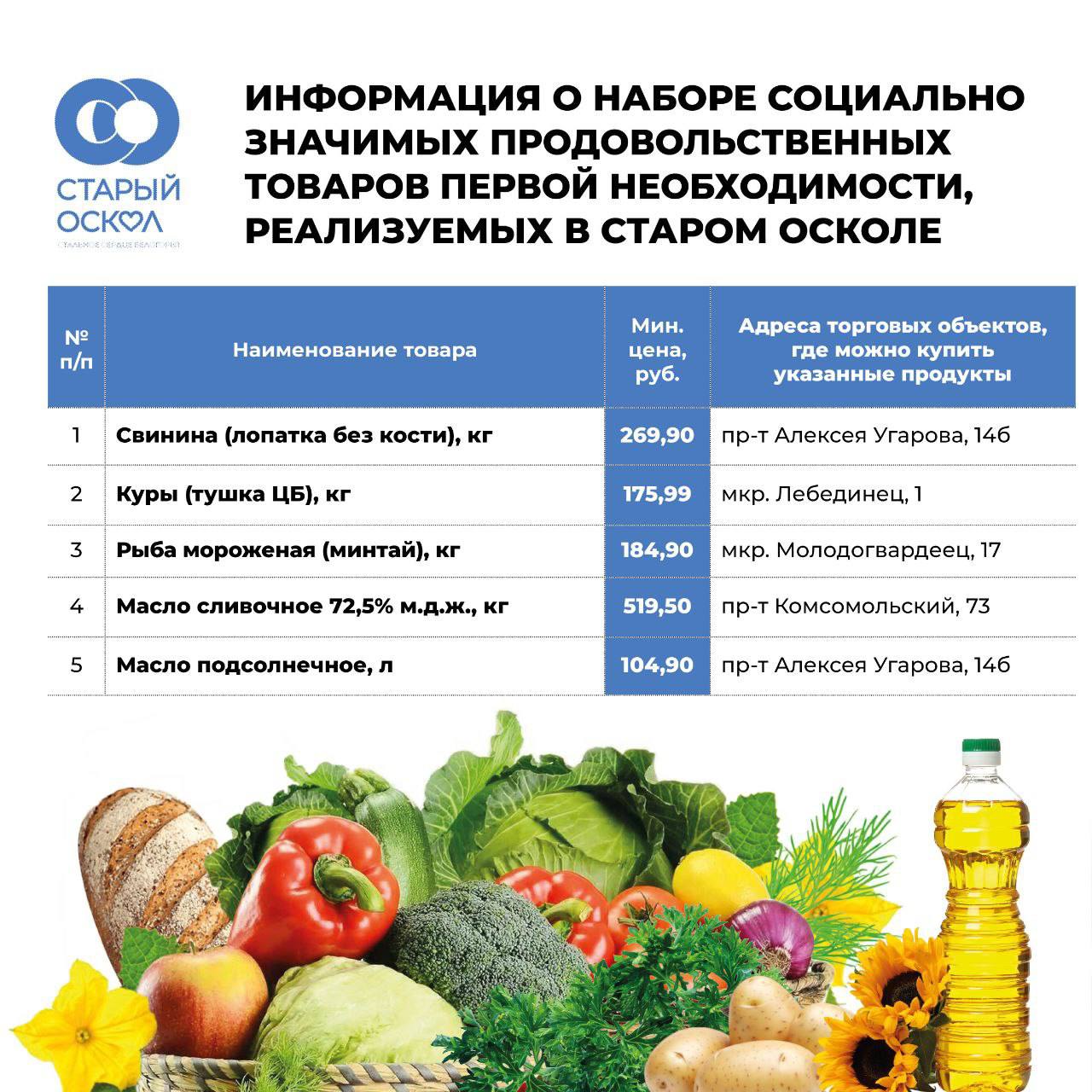 Для вашего удобства в карточках собрана актуальная информация о ценах на социально значимые продукты, а также адреса магазинов.
