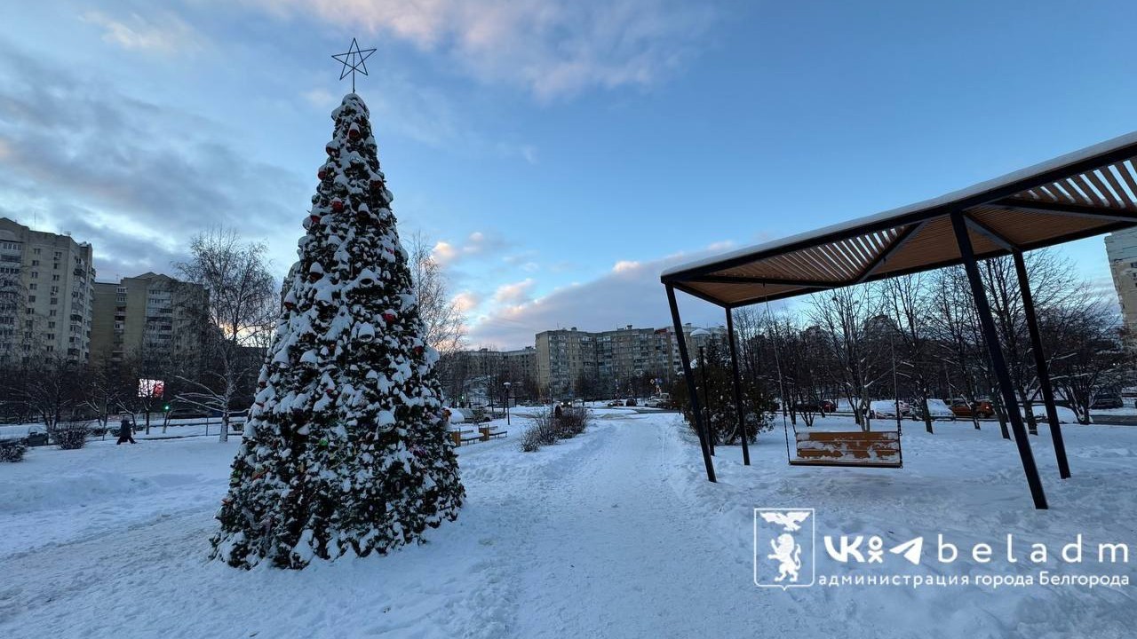 Высота новогоднего дерева в сквере «Комсомольский» – семь метров. Украшения на нём сделаны руками юных белгородцев.