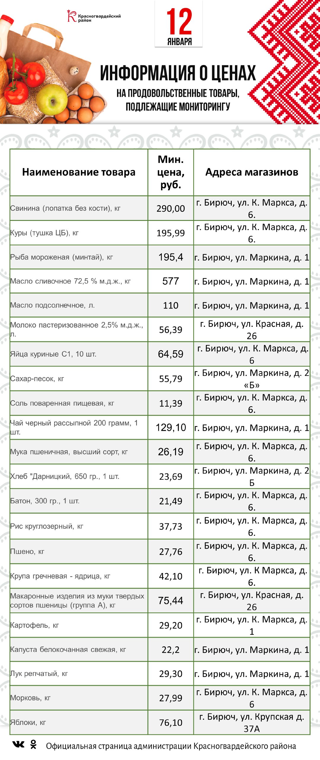Представляем информацию о минимальных ценах набора социально значимых товаров первой необходимости по состоянию на 12 января