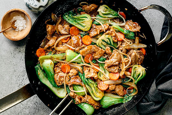 - Для соуса: 2 ст. л. устричного соуса, 1 ст. л. вина Шаосин, 1 ч. л. светлого соевого соуса, 1/2 ч. л. темного соевого соуса, 1 ч. л. сахара, 1 ст. л. кукурузного крахмала и 1/2 стакана куриного бульона с добавлением 1/2 ч. л. кунжутного масла.