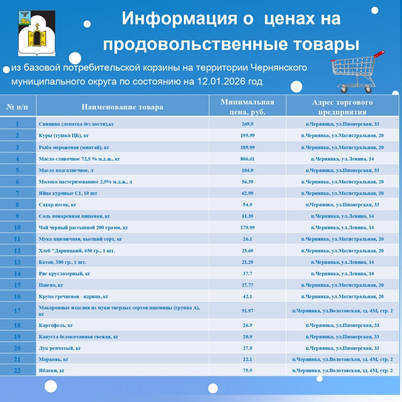 Предлагаем вашему вниманию актуальную подборку минимальных цен на продовольственные товары, которая позволит вам более осознанно подходить к вопросам закупок и планирования семейного бюджета. В условиях постоянных изменений на рынке очень важно быть информированными о цене на основные продукты питания.
