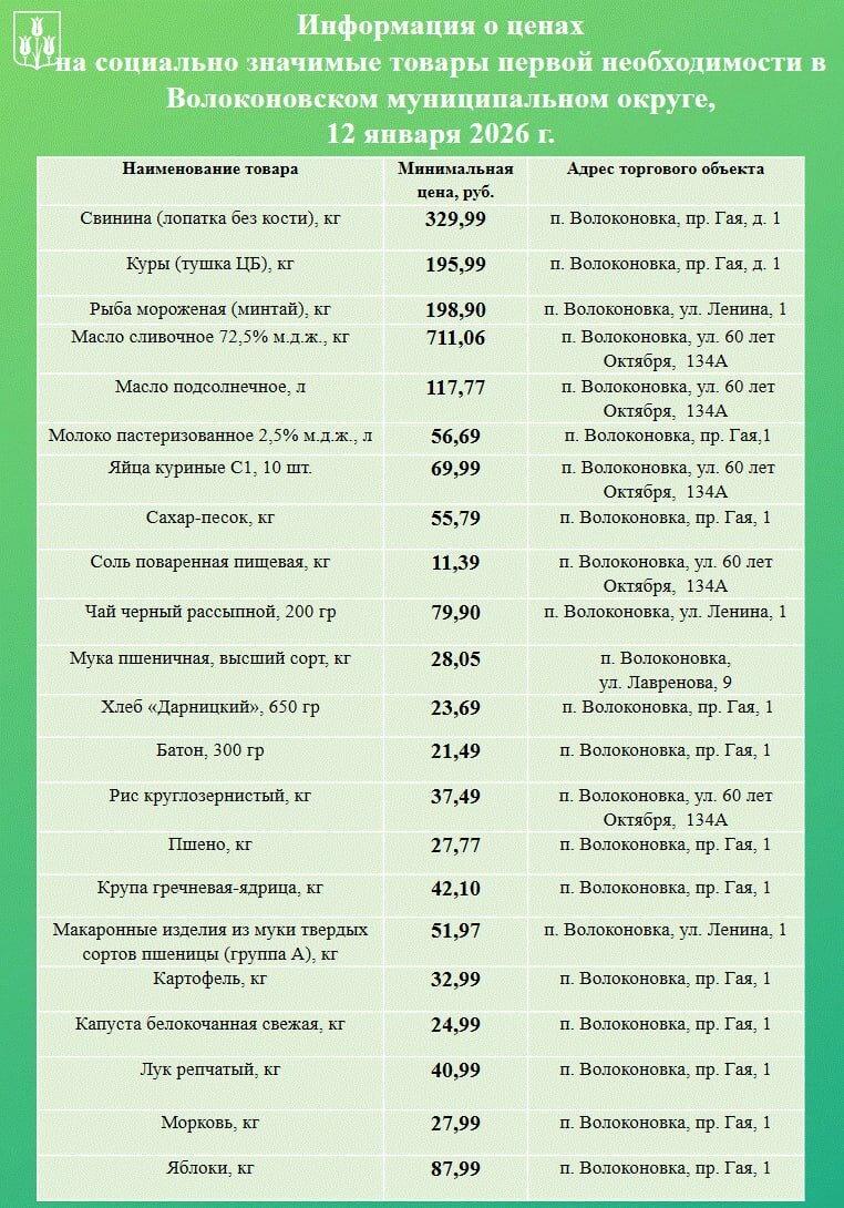 Уважаемые волоконовцы!. Информируем вас о ценах на продовольственные товары из базовой потребительской корзины, складывающихся в нашем муниципалитете на сегодняшний день