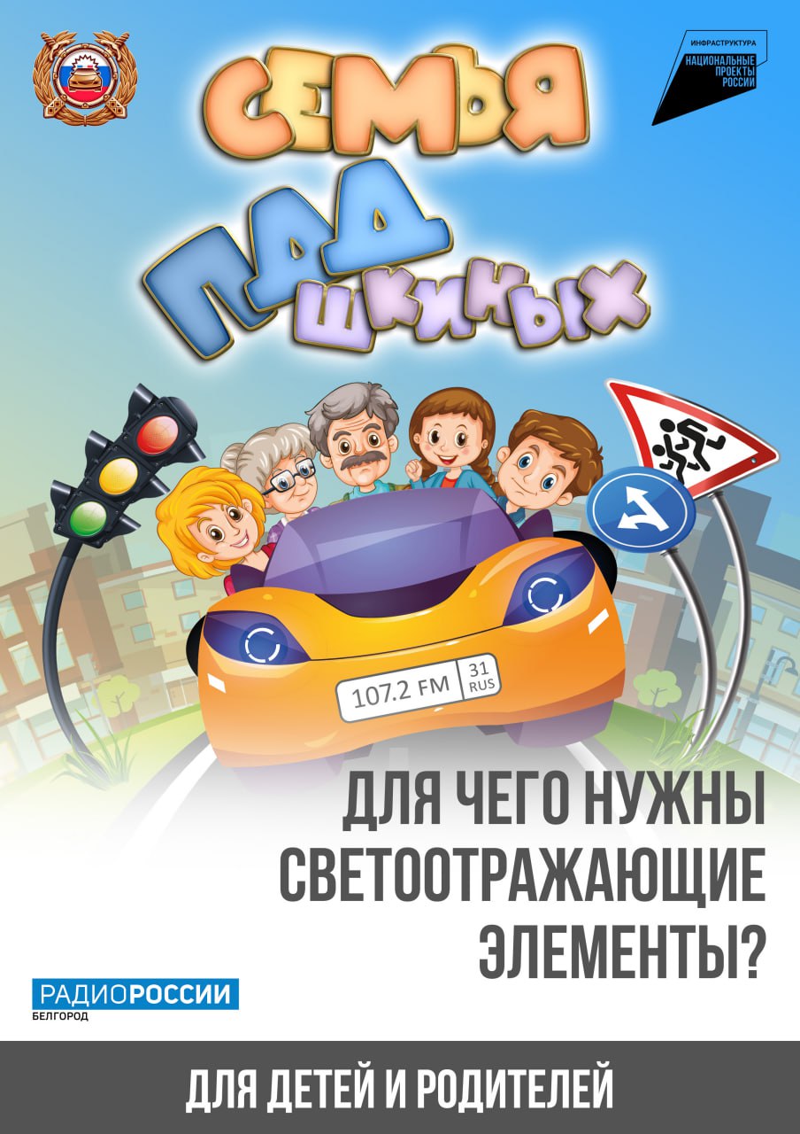 «Семья ПДДшкиных» – это специальный совместный проект «Радио России. Белгород» и управления Госавтоинспекции по Белгородской области, предназначенный для детей и их родителей. Он подготовлен в рамках нацпроекта «Инфраструктура для жизни».
