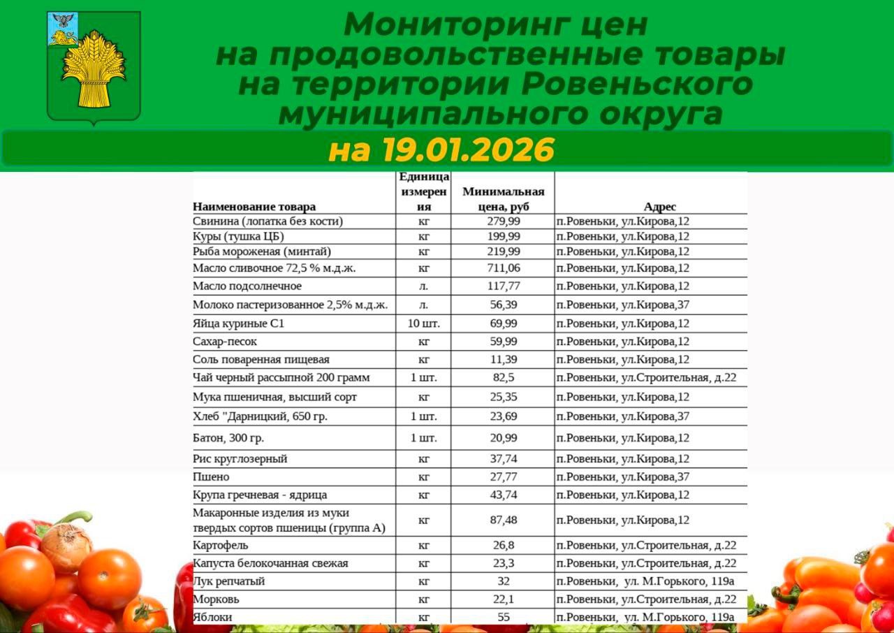 Делюсь с вами подборкой цен на социально значимые продукты на территории Ровеньского муниципального округа по состоянию на 19 января 2026 года.