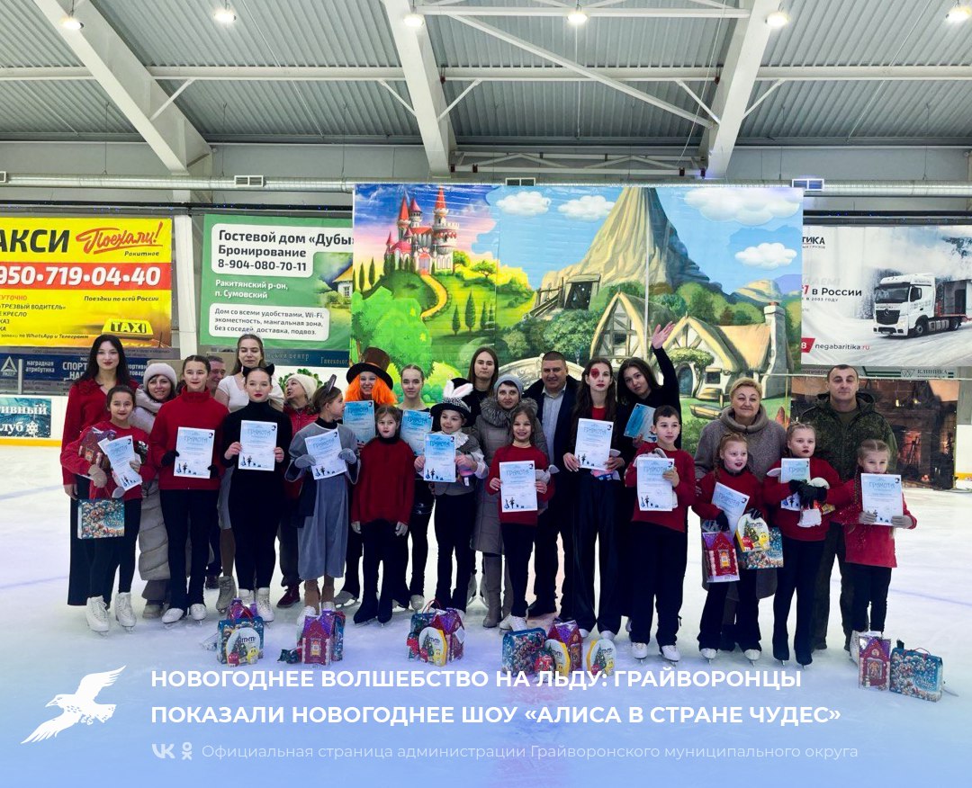Фигуристы спортивной школы города Грайворон выступили перед публикой, собрав полный аншлаг. В основе шоу лежит вдохновение от культового фильма 2010 года «Алиса в Стране Чудес». Тренер Алина Асютина, пересмотрев любимую киноленту, с энтузиазмом взялась за создание постановки. Она написала сценарий, подобрала музыкальное сопровождение, озвучила персонажей и сама воплотила на льду образ мамы Алисы.