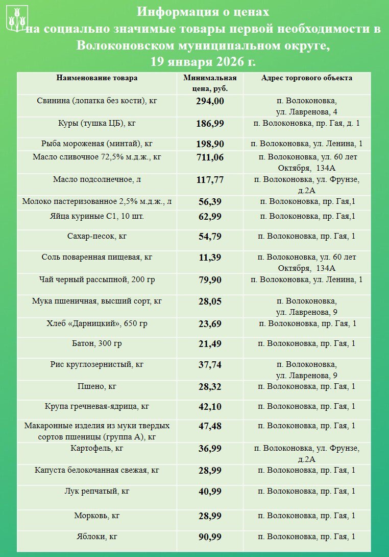 Уважаемые волоконовцы!. Информируем вас о ценах на продовольственные товары из базовой потребительской корзины, складывающихся в нашем муниципалитете на сегодняшний день