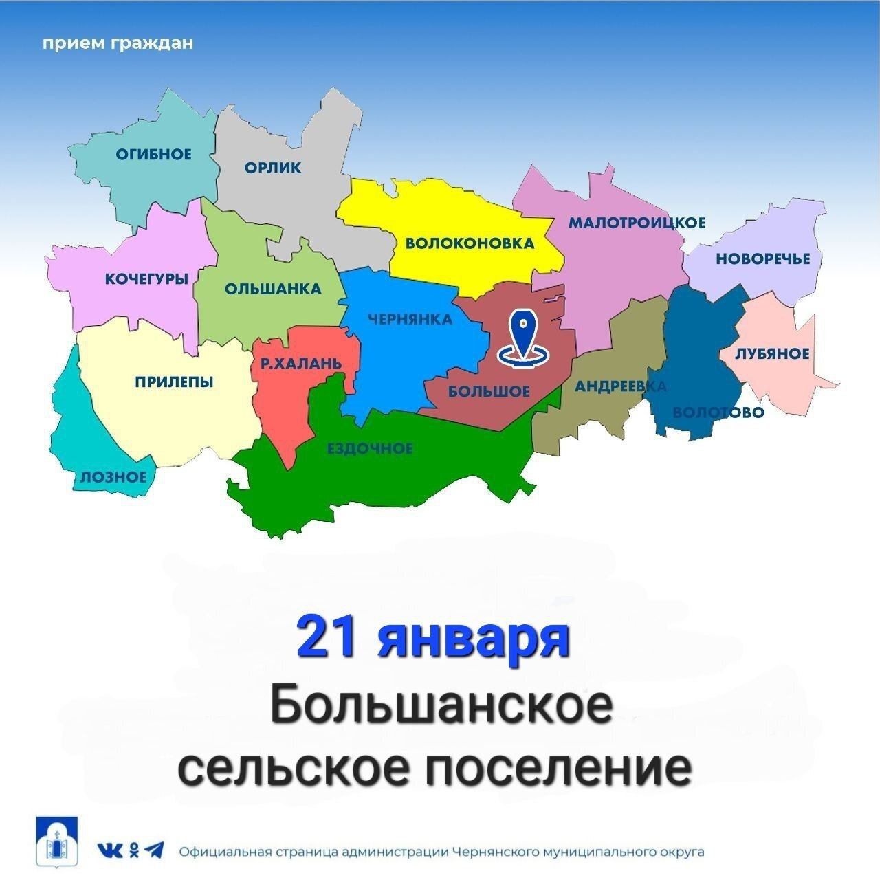 Приглашаем вас к участию в личном приёме, который состоится 21 января, в 14.00 по адресу с. Большое, ул. Красовка, д.12.
