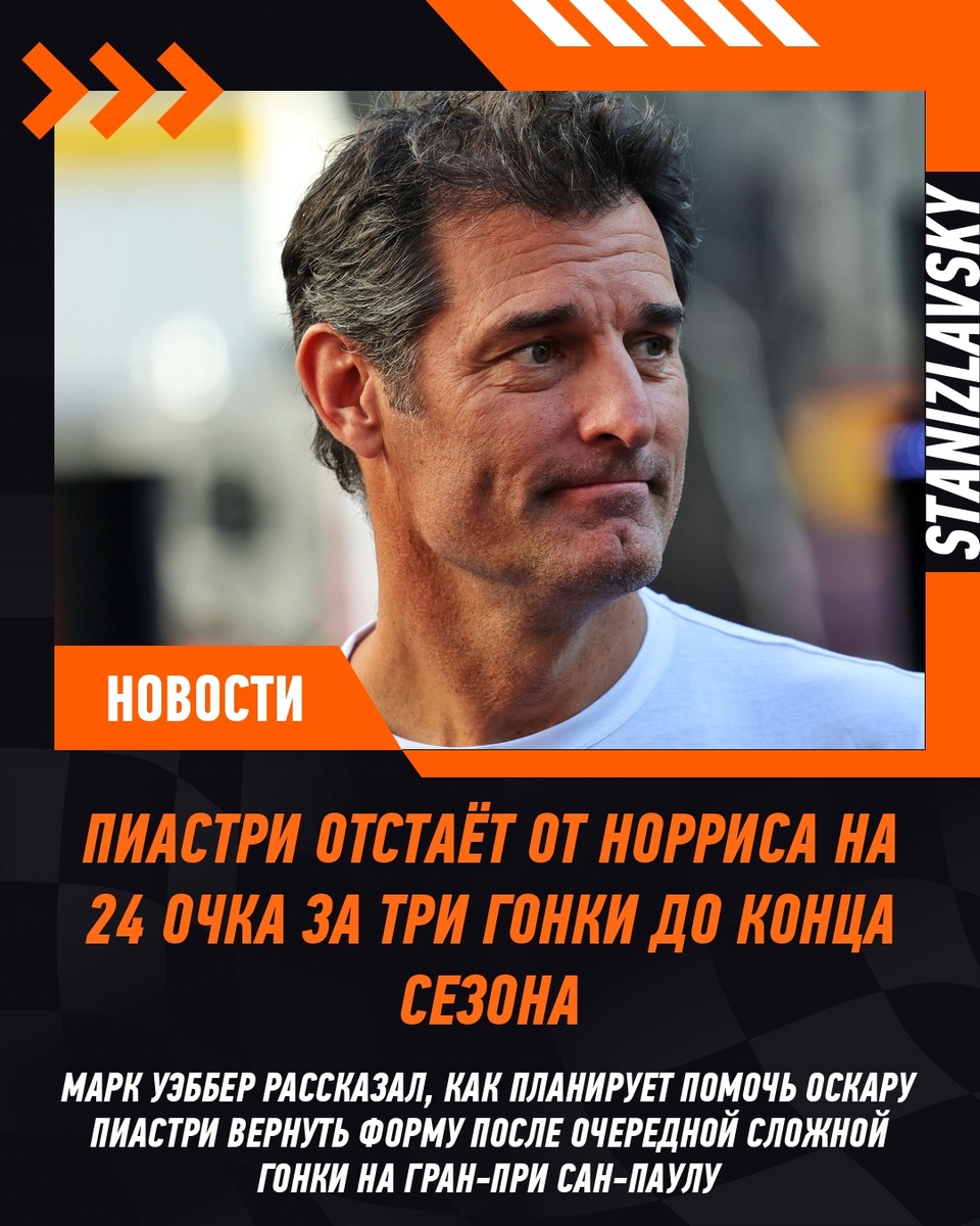 На последних гонках Пиастри демонстрировал свои способности, однако ему не удалось зацепиться за лучшие позиции. Трижды подряд он финишировал на пятом месте, не сумев подняться выше, несмотря на заметный прогресс. В Бразилии гонщик показал неплохой темп, но 10-секундный штраф за инцидент с Кими Антонелли лишил его надежд на более высокий результат и второго места в Интерлагосе.