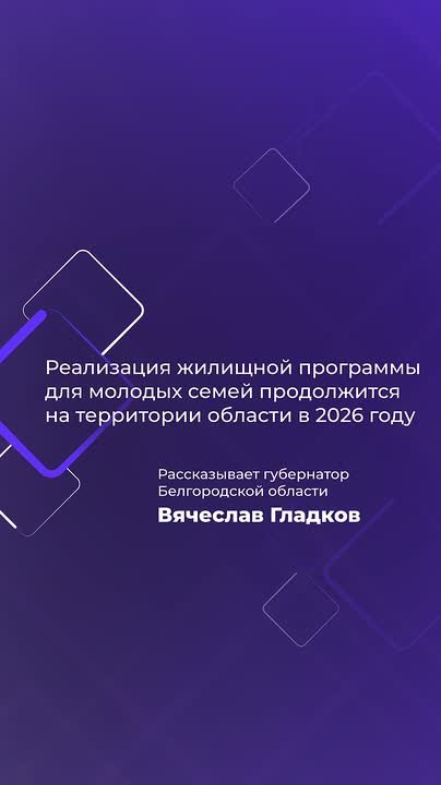 Об этом сообщил сегодня губернатор области Вячеслав Гладков. По словам главы региона, в 2026 году на территории области продолжится реализация жилищной программы для молодых семей.