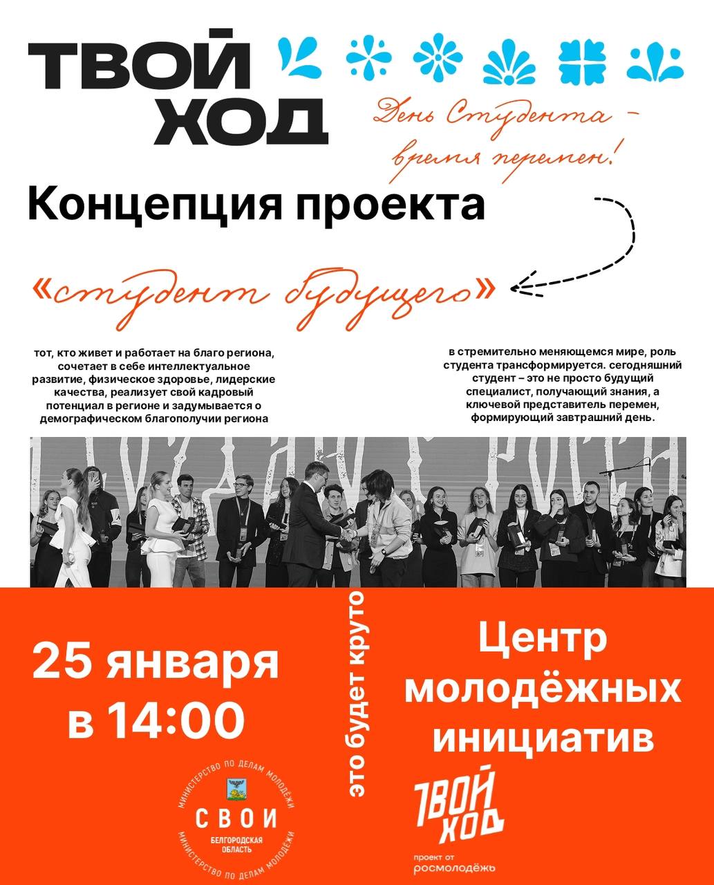 25 января в 14:00 в Центре молодёжных инициатив тебя ждут активисты проекта «Твой Ход» и мероприятие, где ты станешь не зрителем, а настоящим творцом молодёжной политики!