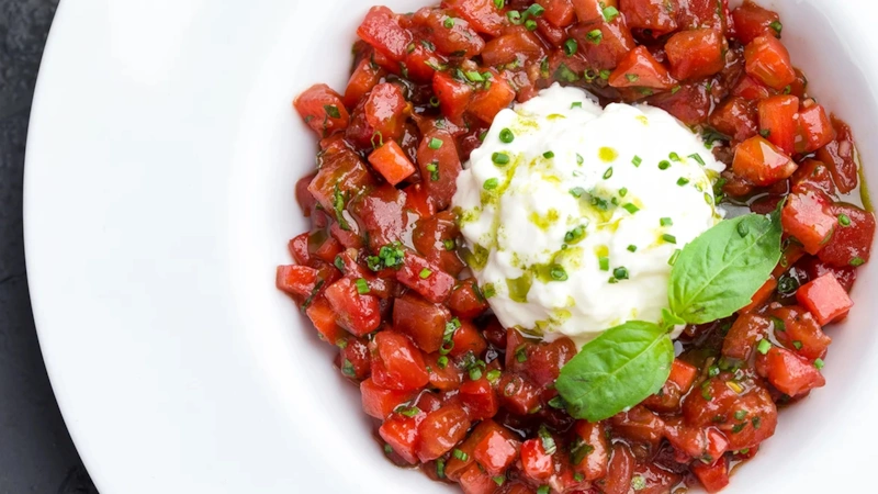 Когда лето на пороге, порой так и тянет попробовать что-то легкое и яркое. Томатный тартар — это потрясающий вариант для жарких дней, который сочетает в себе сладкие спелые помидоры, хрустящий фенхель и освежающую мяту. Это не только восхитительная закуска, но и простое в приготовлении блюдо, что делает его идеальным для любого повода. Кроме того, отсутствие термической обработки сохраняет все вкусовые качества и полезные свойства ингредиентов.