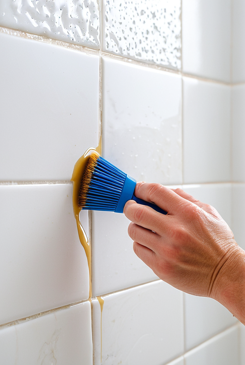 - Нанесение: Используйте кисть или аппликатор, чтобы тщательно обработать только затирку, избегая попадания на плитку.
