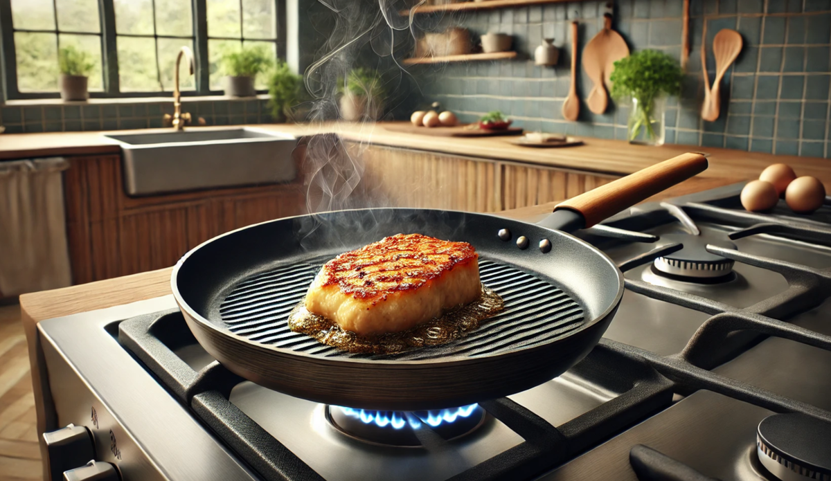 - Керамические и каменные поверхности: Если есть такая сковорода, можно готовить практически без масла, ведь еда к ней не прилипает.