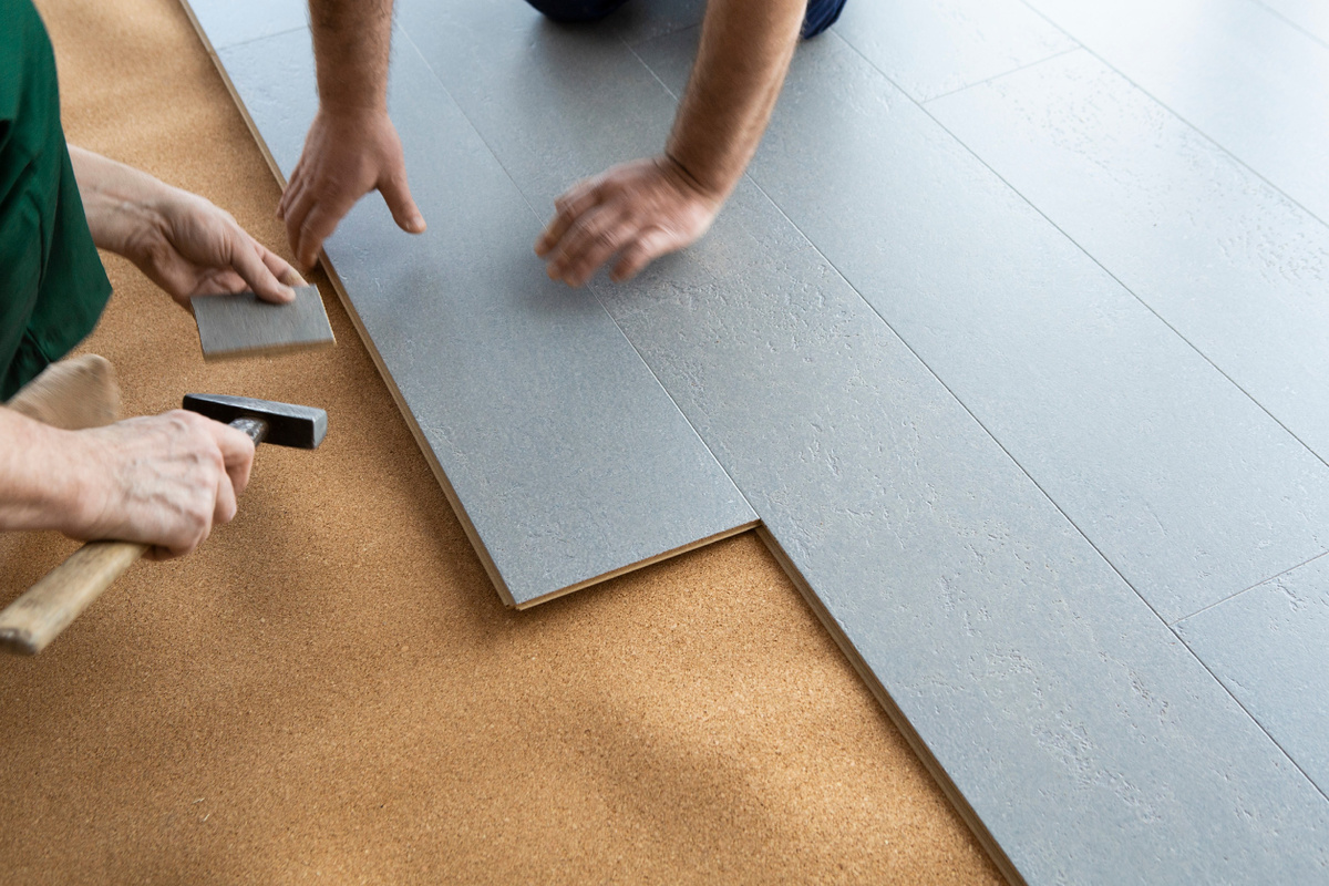Далее две доски соединяются торцевым способом — одна вставляется под углом и опускается до щелчка. Перемешивание элементов из разных пачек в начале монтажа часто помогает избежать заметных различий в оттенке.