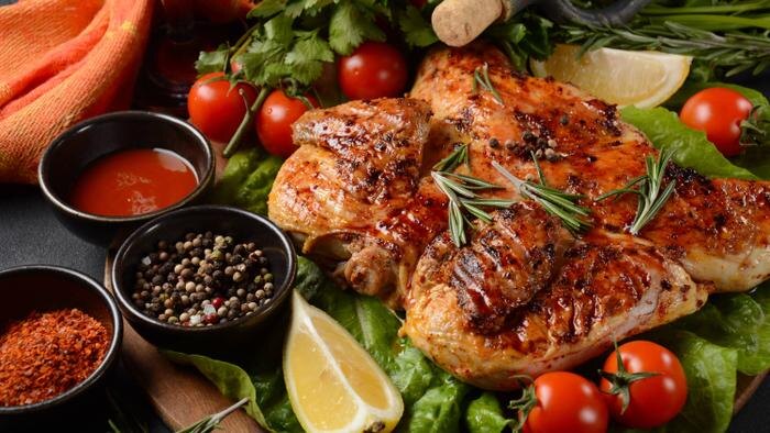 Непревзойдённая хрустящая корочка и лёгкая кислинка томатного соуса создают эффект совместного ужина, когда все устремляются к тарелкам. Разрезанная вдоль грудины птица раскрывается, обретает равномерную прожарку и запоминается мягкостью мяса.