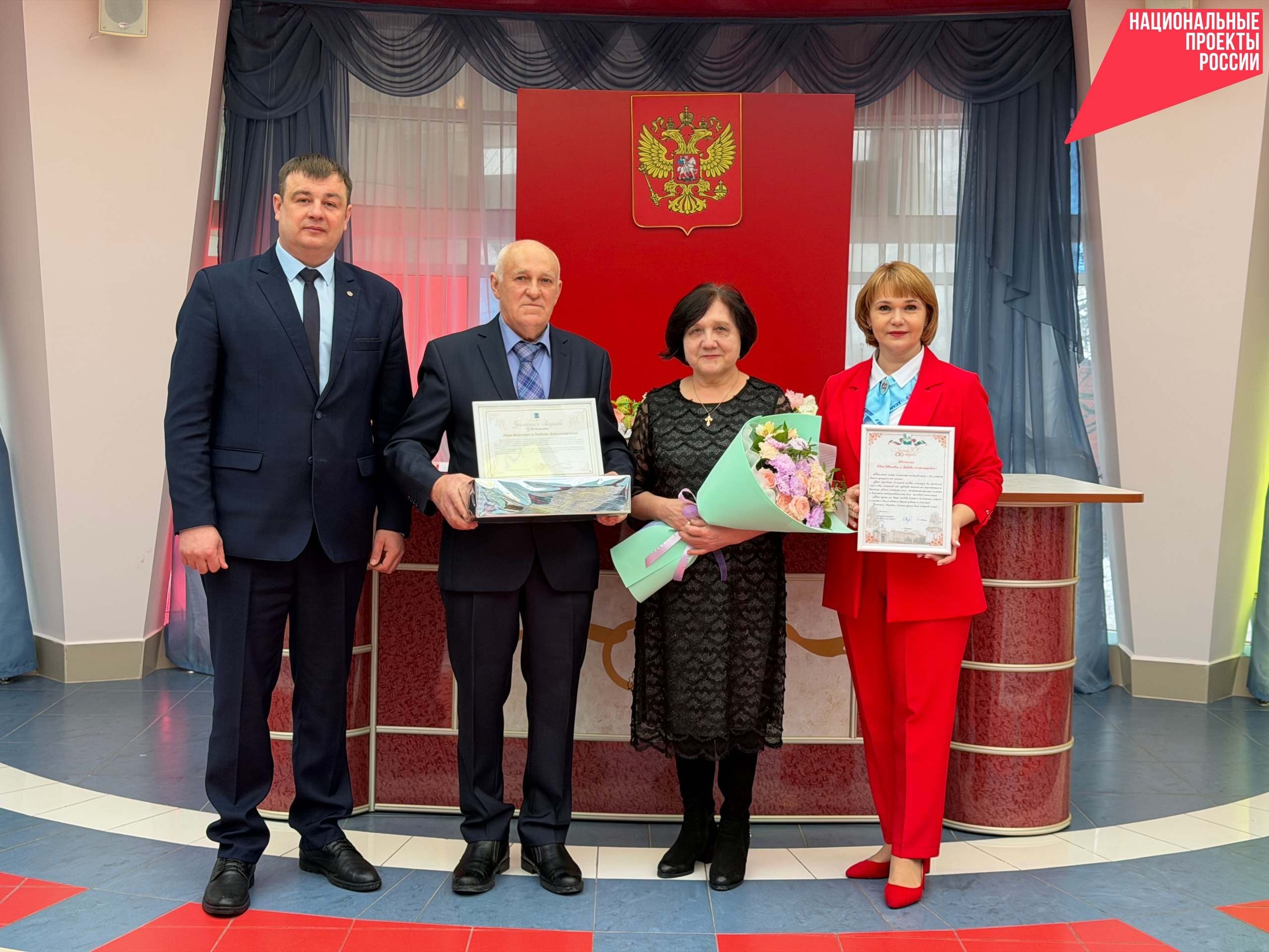 Поздравить супругов пришли почётные гости: первый заместитель главы Ракитянского муниципального округа по строительству, транспорту, ЖКХ и муниципальной собственности Дмитрий Гречихин и начальник отдела ЗАГС Наталья Толстолуцкая. Они пожелали юбилярам крепкого здоровья, хорошего настроения, любви и заботы со стороны близких.