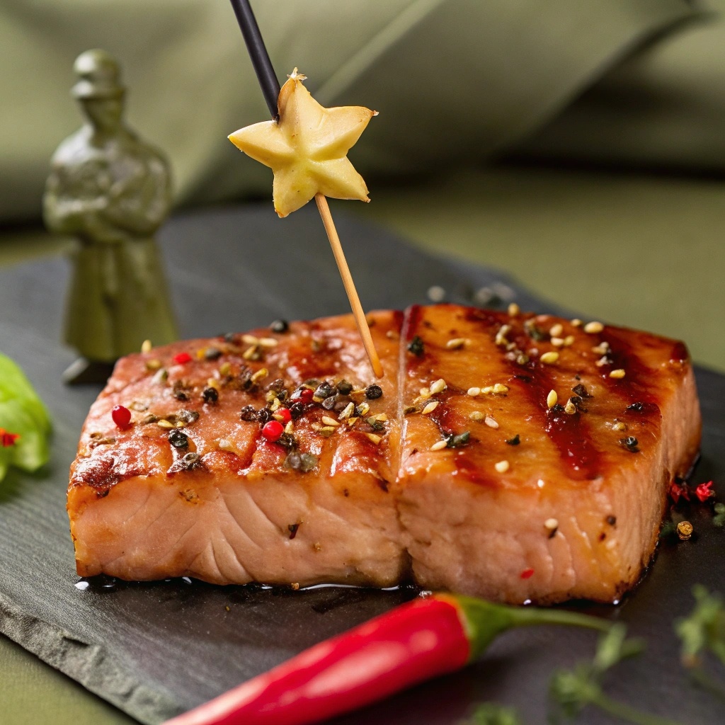 - Стейк из тунца «Кровавый Прилив»: Нежный тунец, замаринованный в кунжутном масле и терияки, обжаренный до идеальной корочки. Лучше всего подавать с семенами кунжута, чтобы почувствовать себя настоящим кулинарным магом.